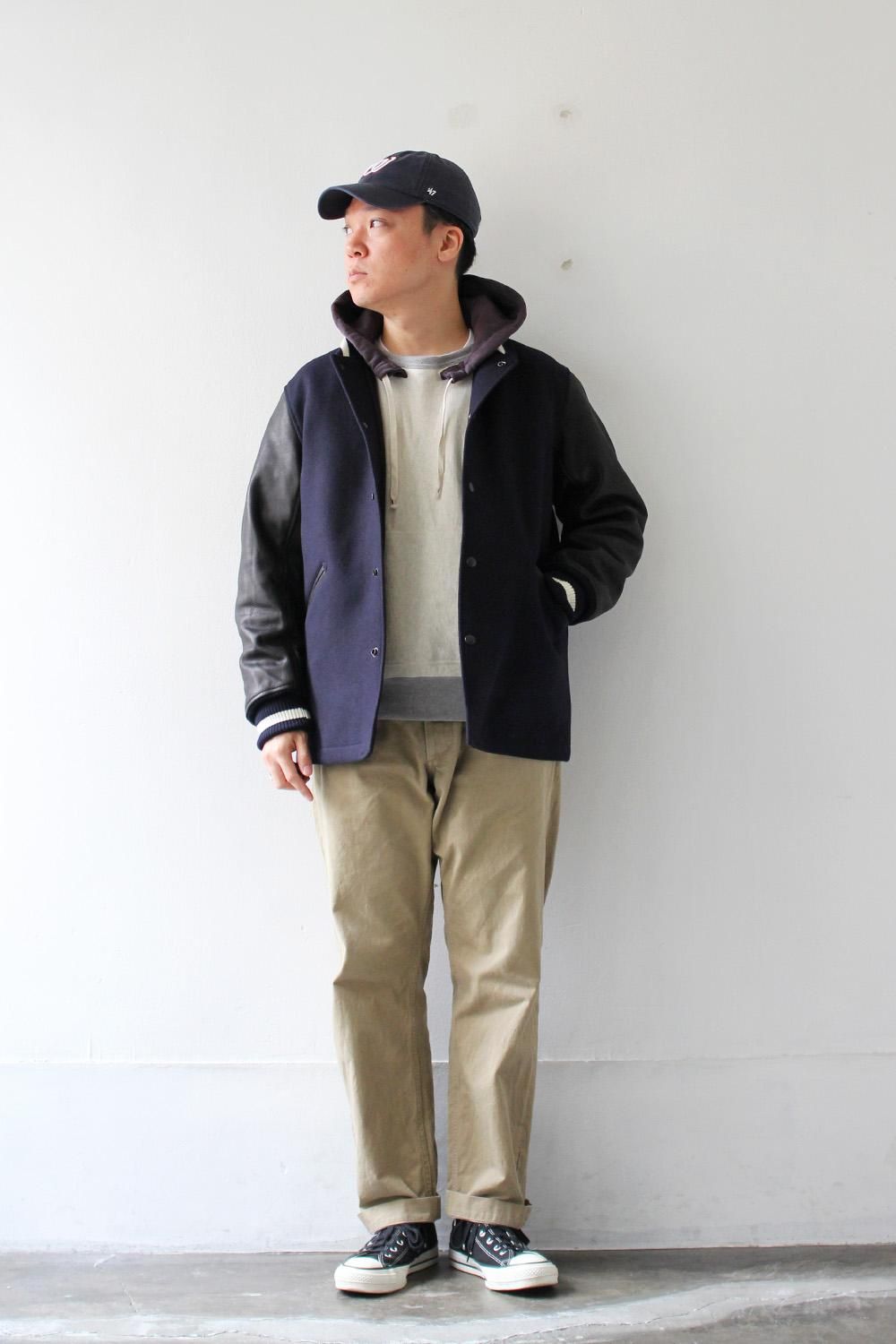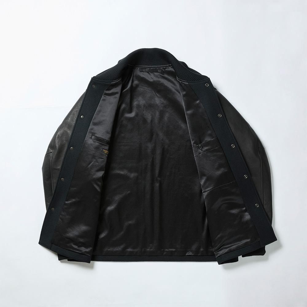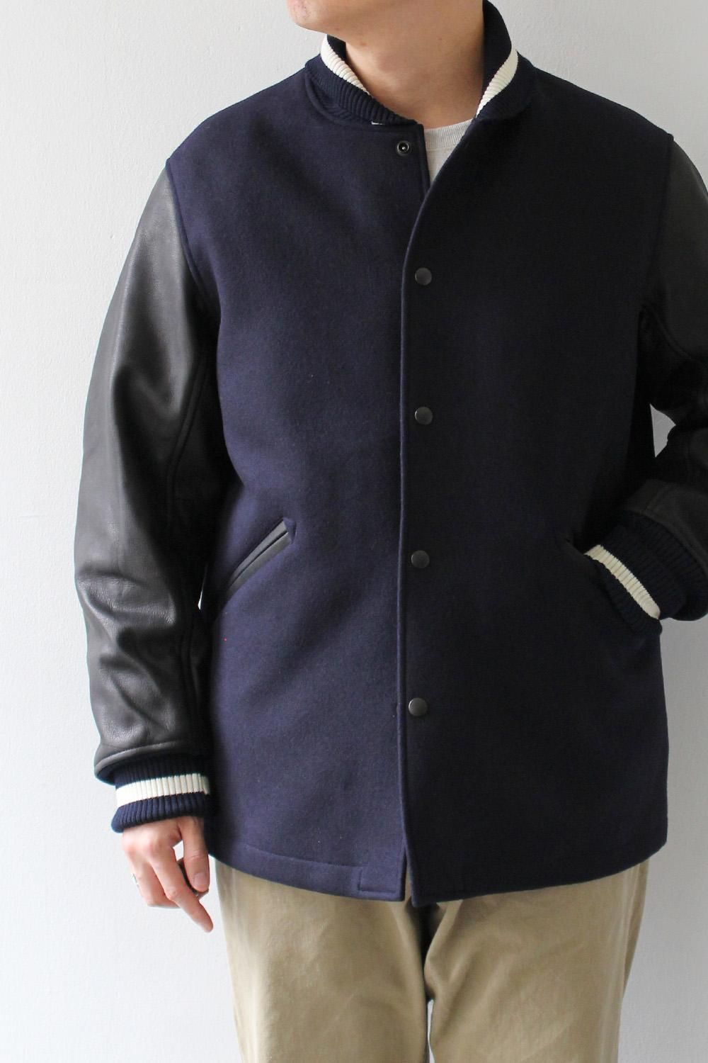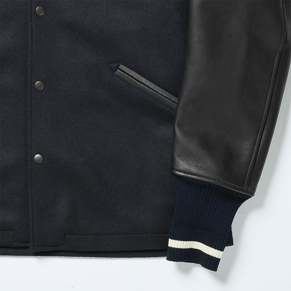 70年代のアワードジャケットを参考に、身頃はメルトン地、袖にはオリジナルの牛革を使用したアワードジャケットです。